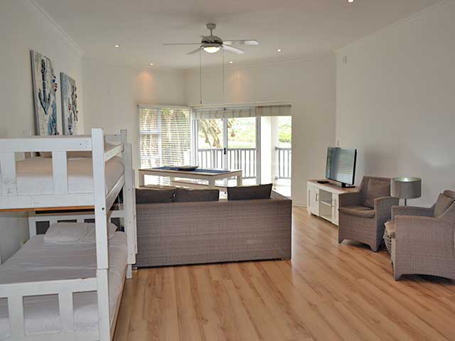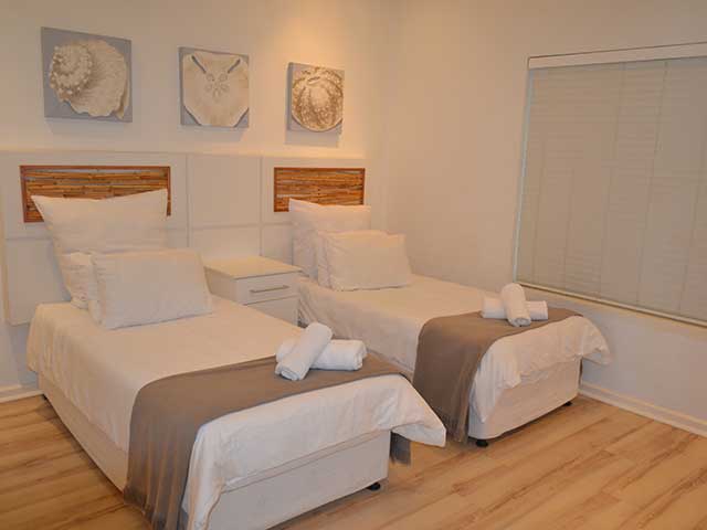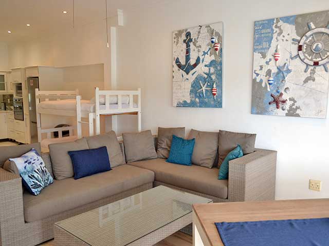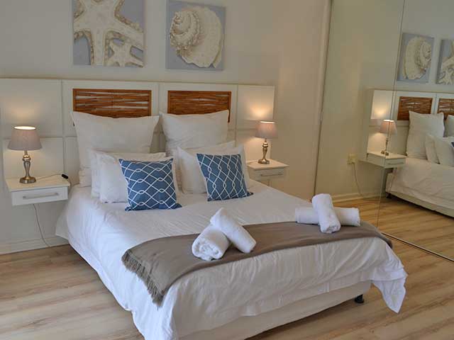Unwind in our luxurious and stylish 3-bedroom 3-bathroom self catering unit with breath-taking views of the Hartenbos River. These units can easily accommodate 8 people with a double bed in the main bedroom, twin single beds in each of the other rooms and a bunker bed in the living room.