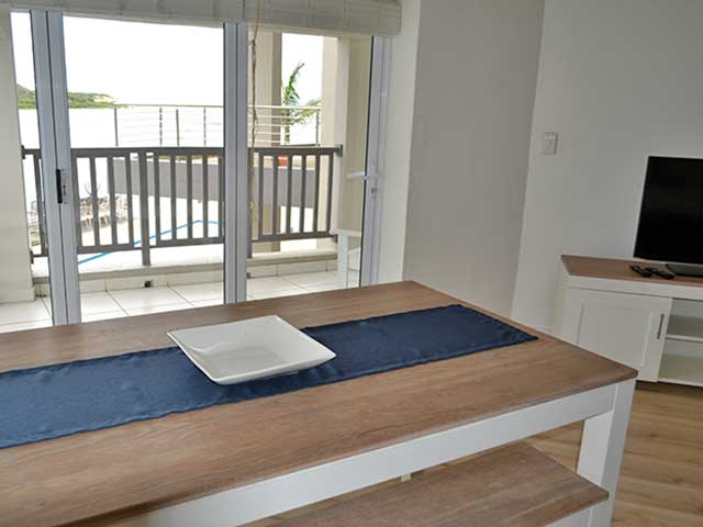 The main bedroom and living room boasts with a spectacular river and pool view. Each unit is decorated to modern standards with a fully equipped open plan kitchen and spacious lounge. What better way to spend and evening relaxing on the balcony with the Outeniqua Mountains afar and the Hartenbos River right below.